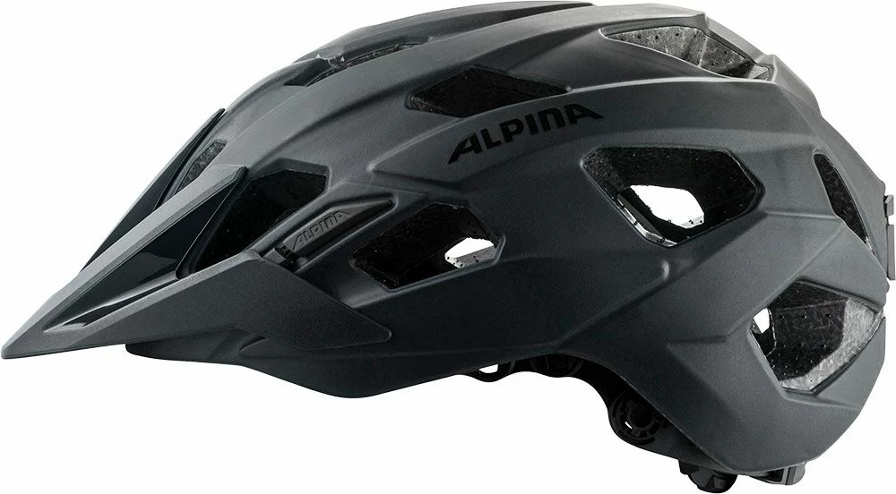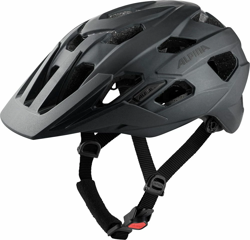 Probado cientos de miles de veces y utilizado en todos los cascos de bicicleta de Alpina: la conocida hebilla de cinturón con botón rojo de presión y retención automática de varias etapas. El sistema Ergomatic se puede manejar con una sola mano – en subida se puede aflojar la correa, en bajada se aprieta – y no se puede abrir en caso de caída.