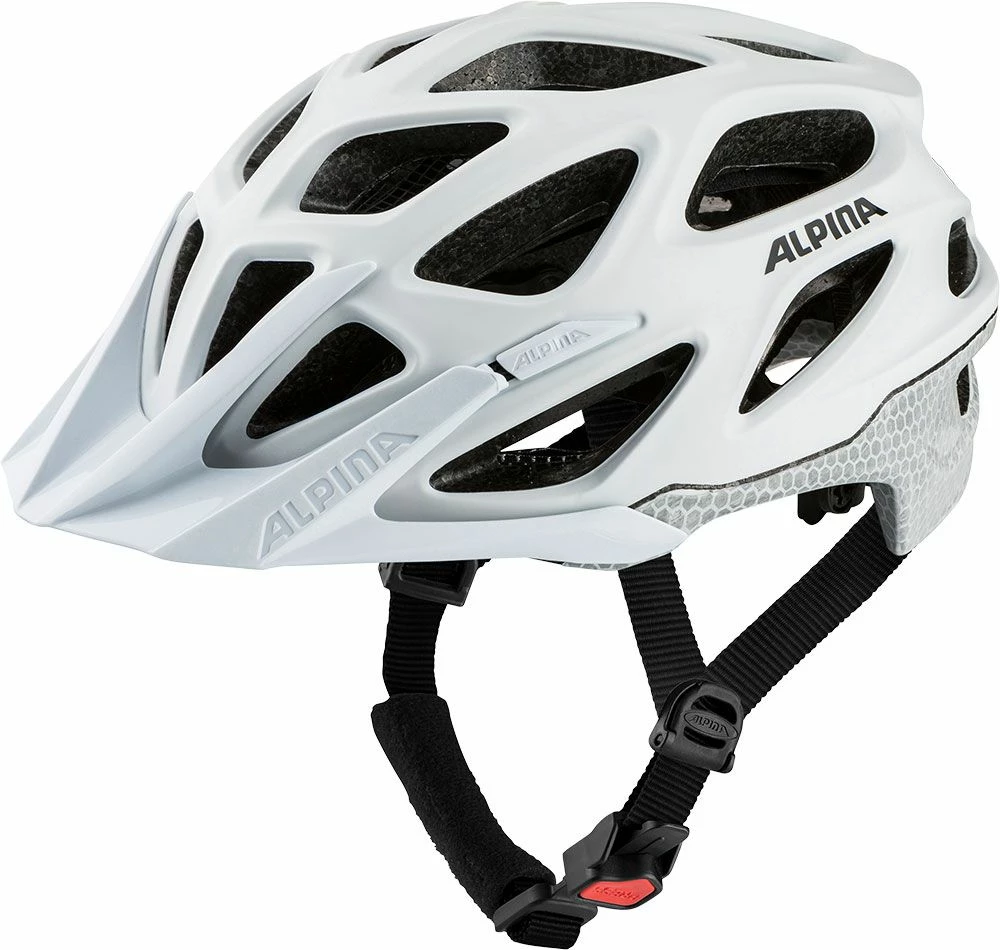 Probado cientos de miles de veces y utilizado en todos los cascos de bicicleta Alpina: la conocida hebilla de cinturón con pulsador rojo y retención automática de varios niveles. Ergomatic se puede manejar con una sola mano – se puede aflojar la correa cuesta arriba, apretarla cuesta abajo – y no se puede abrir en caso de caída.