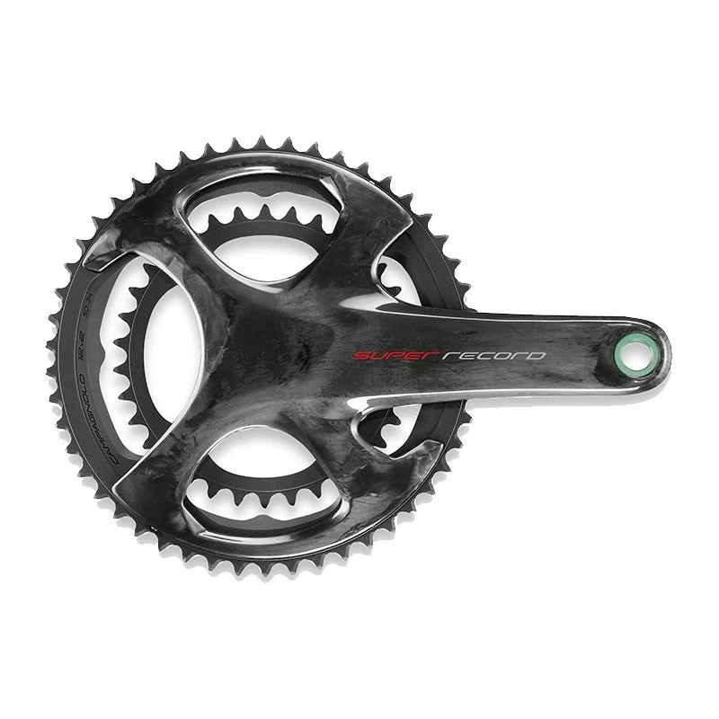Juego de bielas y platos campagnolo super record carbon ultra torque 172.5 mm 36×52 pvp: 965€ ahora: 749,99€ peso: 618gr.(172.5mm) nuevo diseño que ahorra espacio: aumenta la compatibilidad con todos los sistemas de cuadros independientemente del ancho del triángulo trasero