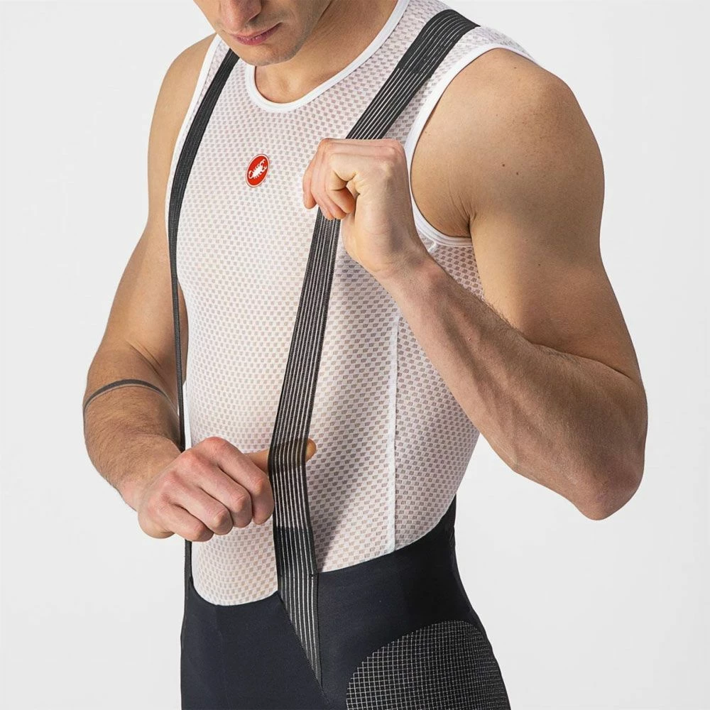 Castelli ha tomado el material principal Vortex y las perneras GIRO4 del culotte con tirantes Competizione directamente del culotte con tirantes Free Aero Race 4. El acolchado de asiento KISS Air2 garantiza un confort extremadamente elevado. Por último, pero no por ello menos importante, apreciará su ajuste único.