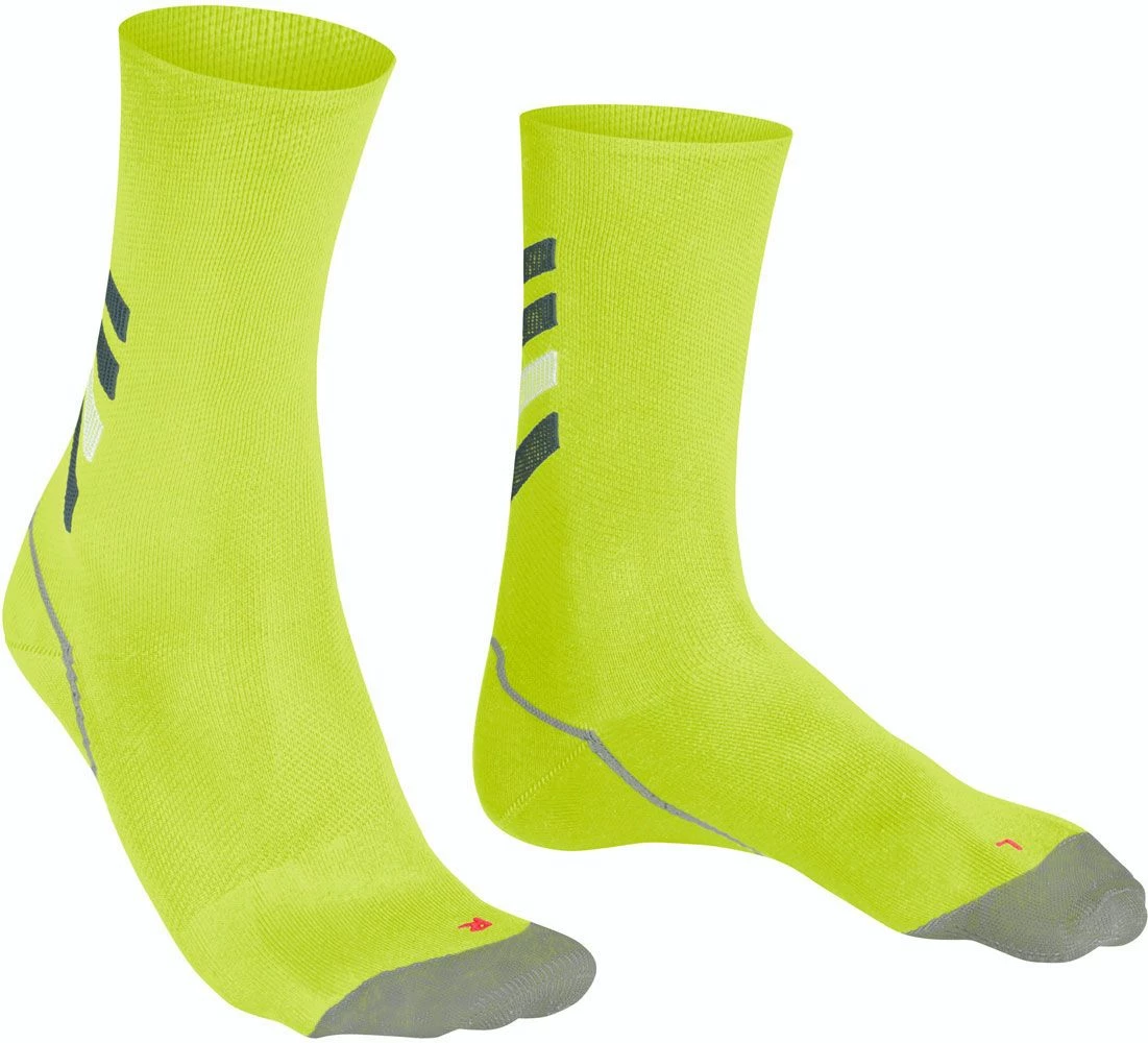 Moreover, the ultra-light padding in combination with the stimulation of the receptors in the ball of the foot and the toes offers improved balance and dynamics as well as immediate power transfer in all cycling shoes. The optimal fit rounds off the functionality of the sports sock. The reflective FALKE lettering also increases safety on the road.