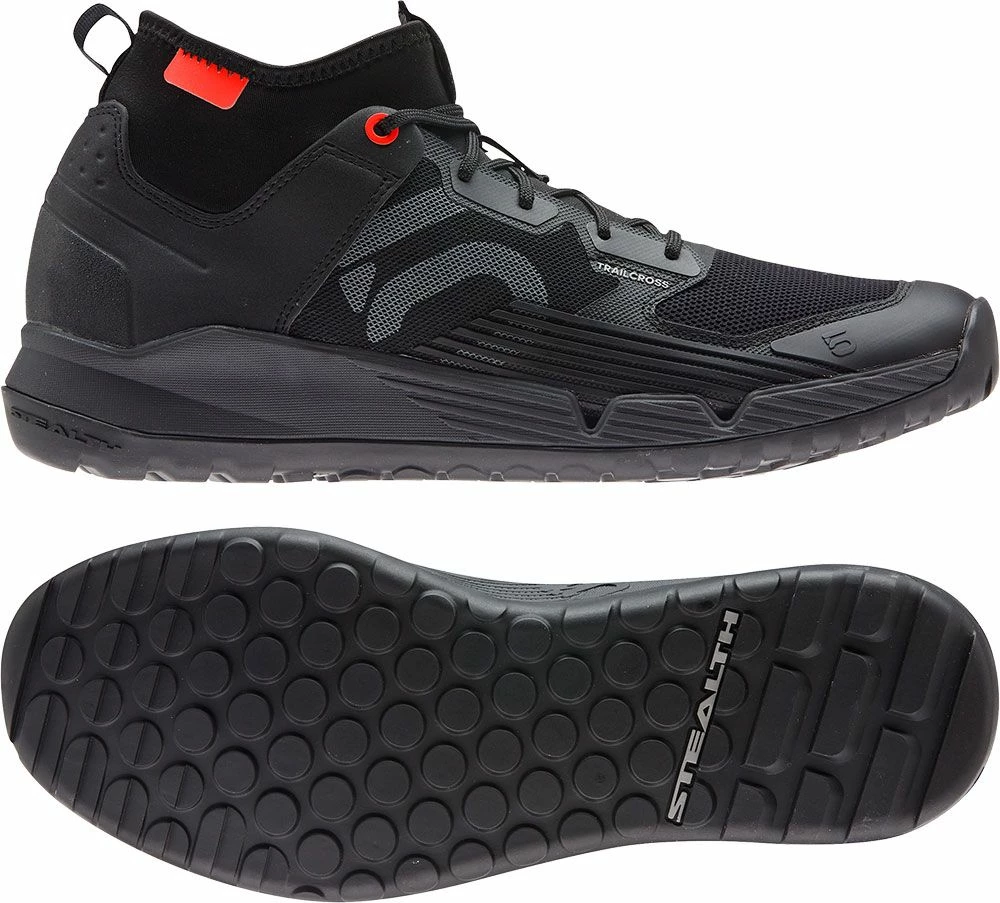 Designed for adventure riding in rugged terrain, these adidas Five Ten Trailcross XT men’s mountain bike shoes blend a trail-running feel with the pedal-gripping power of Stealth® Phantom rubber. Bike or hike, the balanced flex adapts to all-terrain exploration. A neoprene cuff helps seal out dirt.