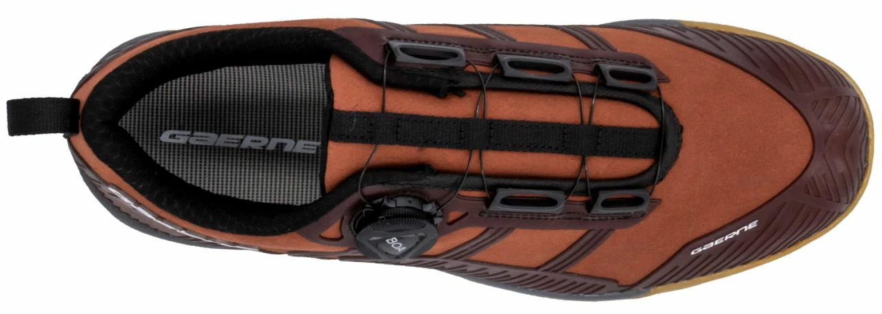 Gaerne presenta la nueva zapatilla All Terrain G.OAK con suela G.Traction Vibram para un excelente agarre en cualquier terreno y el sistema de cierre BOA L6. La parte superior de microfibra con efecto ante se adapta perfectamente a la forma del pie, los refuerzos en las zonas de mayor desgaste protegen contra la abrasión.