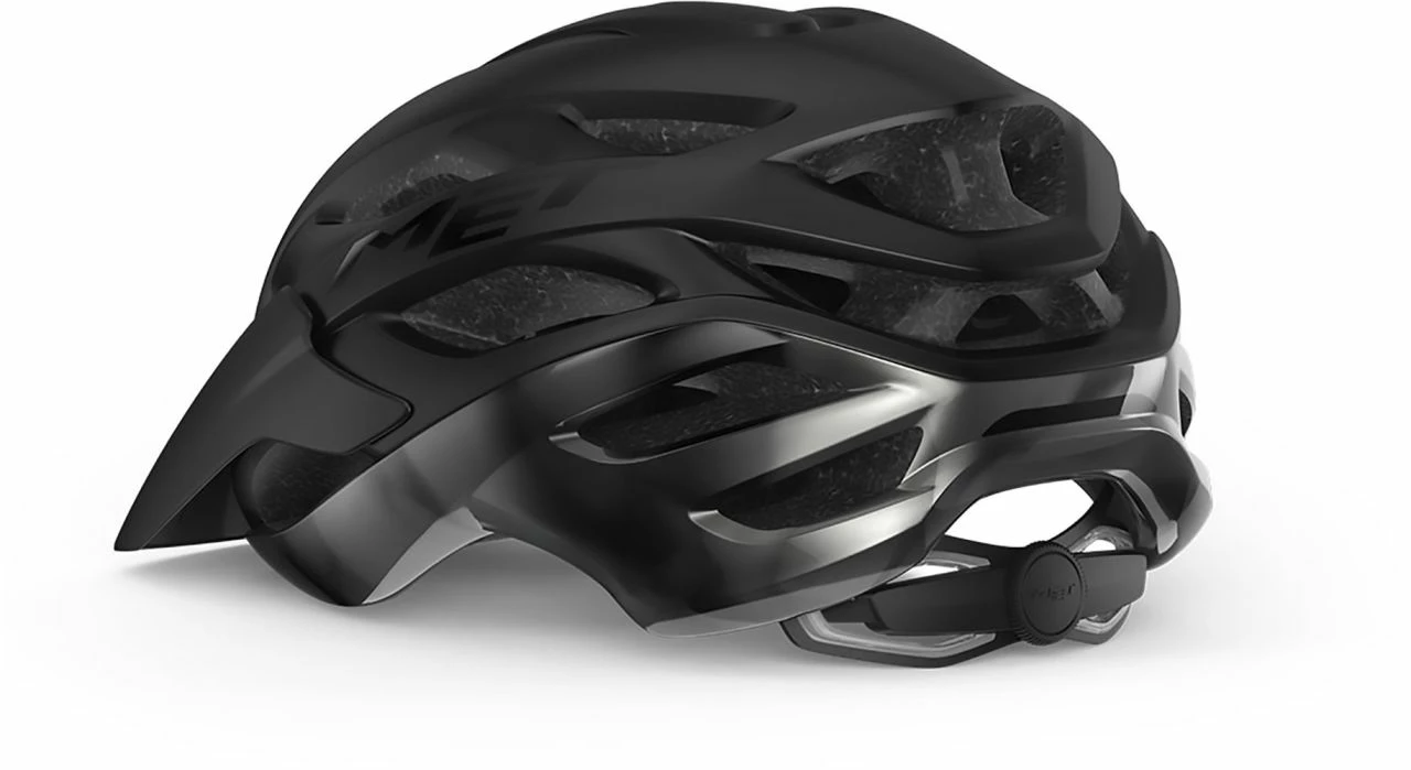Nothing of the sort with the Veleno, the most consistent cross-country helmet in MET’s MTB range. The visor directs the air to the extra large vents. The Gel O2 front pad and the ventilated straps complete this «overheating protection».