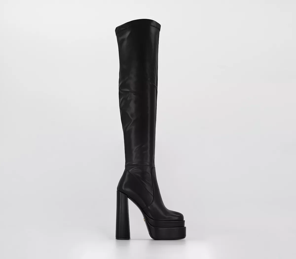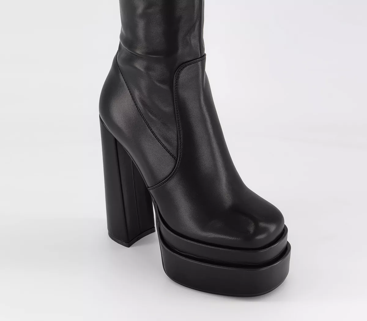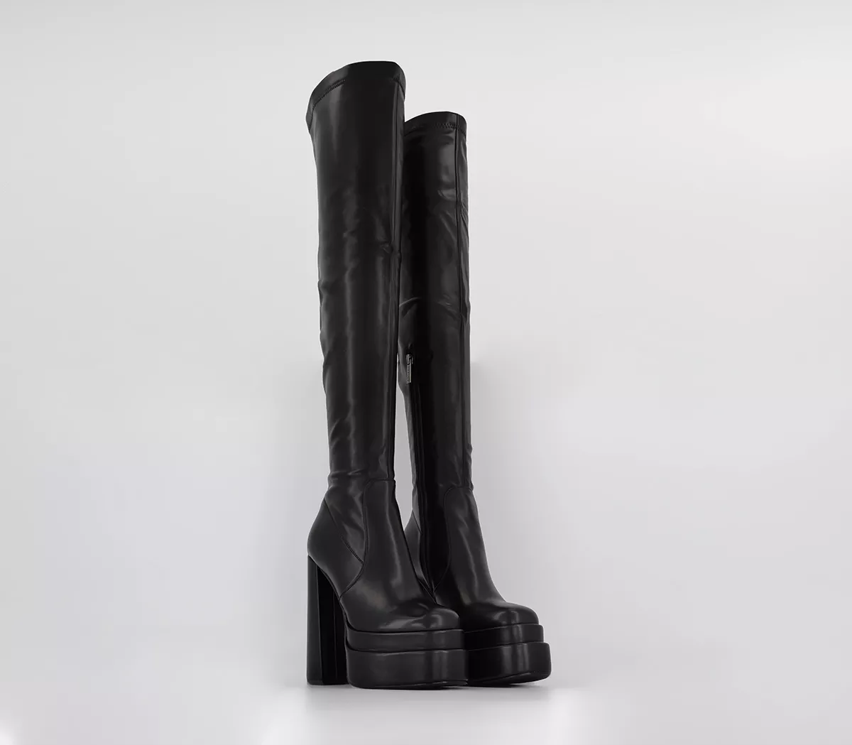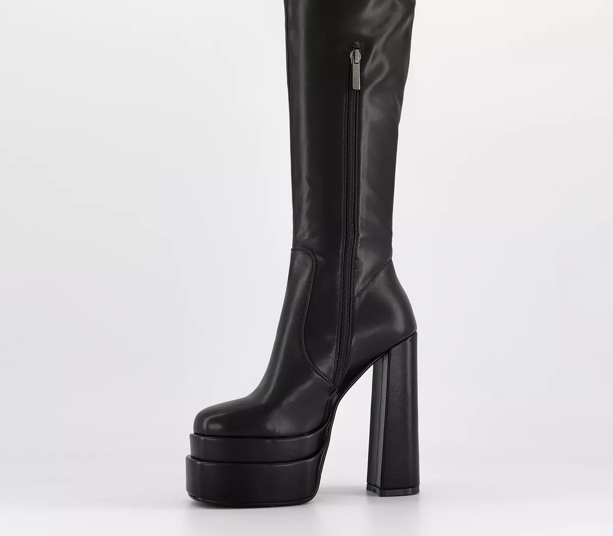 Kamala Over The Knee Boots, with a stacked heel for a strong strut. Block heel, stitch detailing design and zip up fastening.