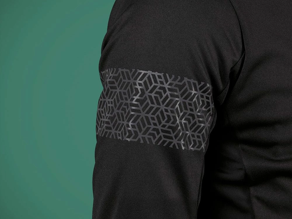 - Smooth bonded waistband with silicone gripper on back and reflective elements for excellent fit and visibility