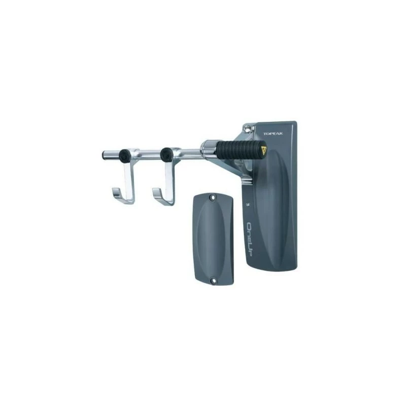 SOPORTE BICI TOPEAK ONEUP PVP: 39,99€ Sujeta la bicicleta, perfecto para almacenamiento . Muy elegante, ligero y de tamaño muy reducido . Cuenta con unos protectores para las cubiertas para que no se dejen marcas de las ruedas en las paredes . Material: Aluminio y Plastico . Capacidad max de peso: 16kg . Peso: 700g