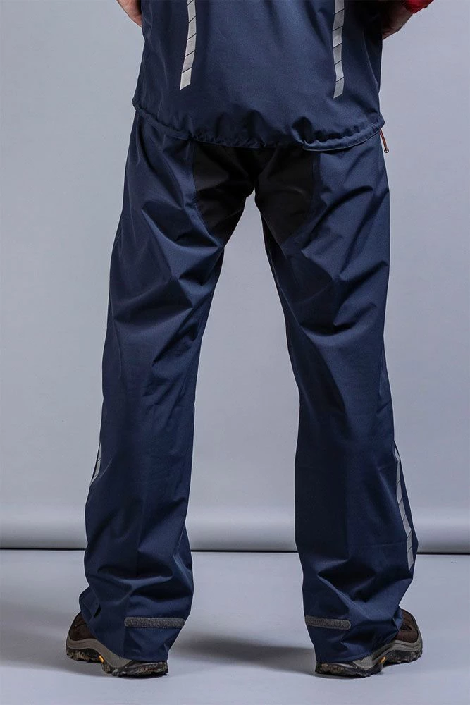 Los pantalones de lluvia tienen una cintura con elástico, la anchura de la pierna se ajusta con dos correas de velcro. Además, los pantalones están equipados con impresiones reflectantes en las piernas. Se pueden guardar en tamaño reducido en la bolsa de almacenamiento incluida.