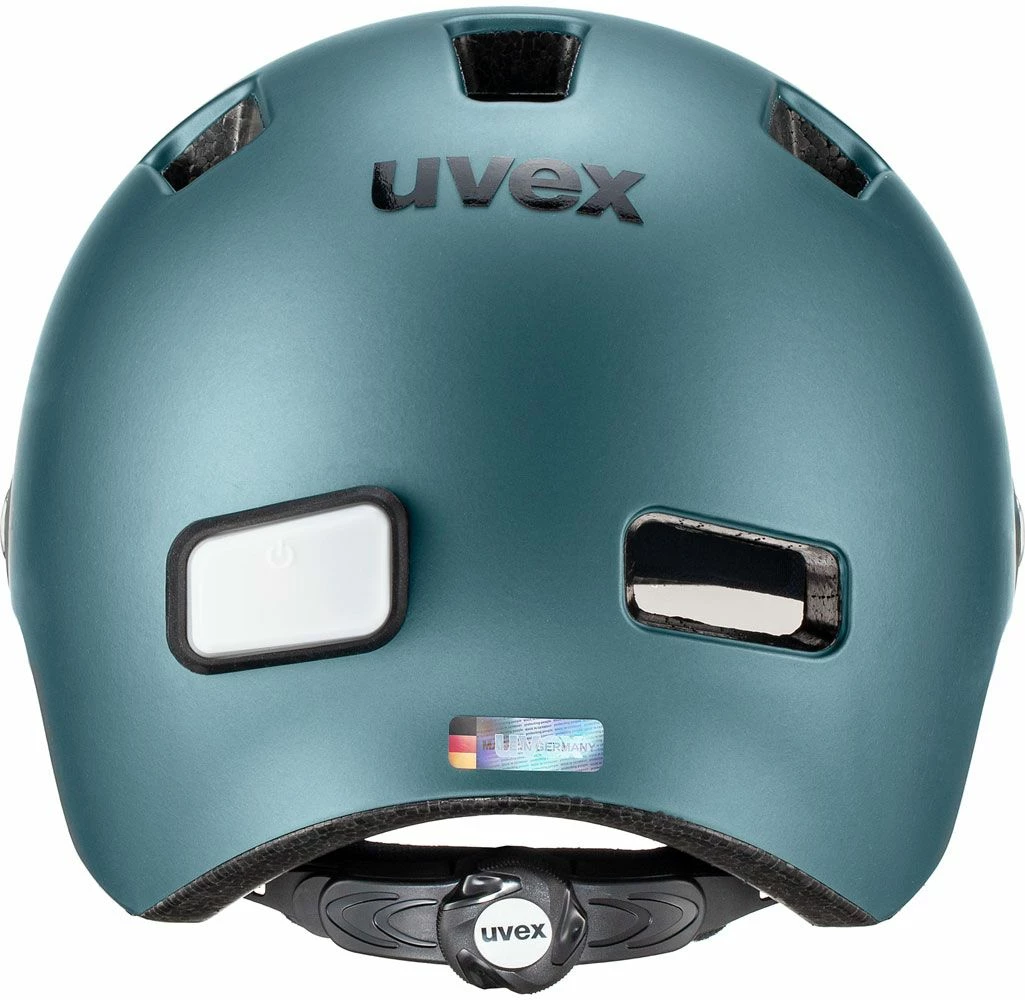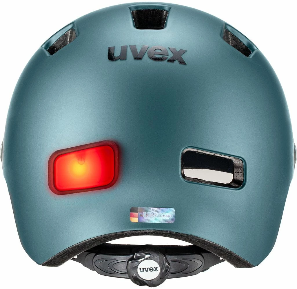 La protección adicional en la jungla urbana la proporciona la zona de la nuca con corte profundo. Para mejorar la visibilidad al anochecer, la visera uvex rush está equipada con un LED enchufable y cintas y logotipos reflectantes. La visera para todo tipo de clima con campo de visión ampliado en color plata litemirror (Cat.1) protege óptimamente los ojos del sol, el viento y otras influencias ambientales en el tráfico rodado.